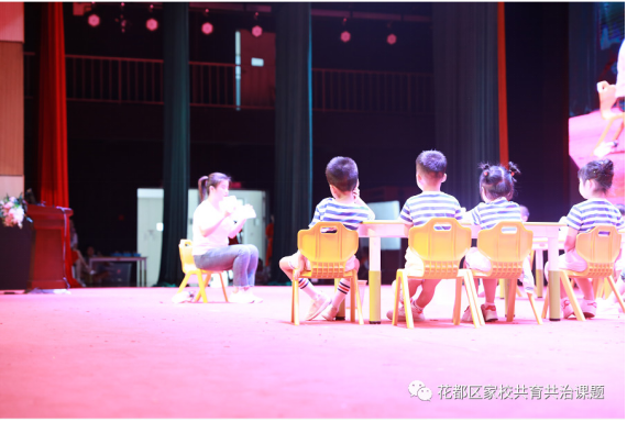 会议结尾,花都区蓓蕾中英文幼儿园和幼飞幼儿园可爱的孩子们上台带领全场成员合唱人文素养主题歌曲《人人健康歌》。